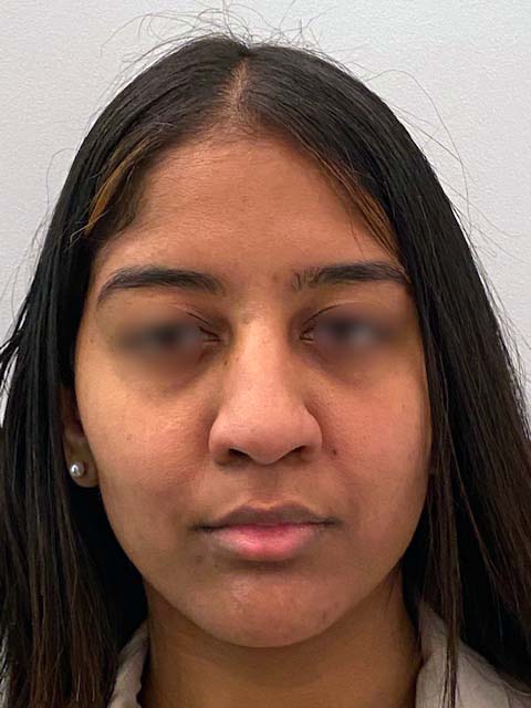 Vues pré-opératoires de face ¾  droit et profil avant rhinoplastie